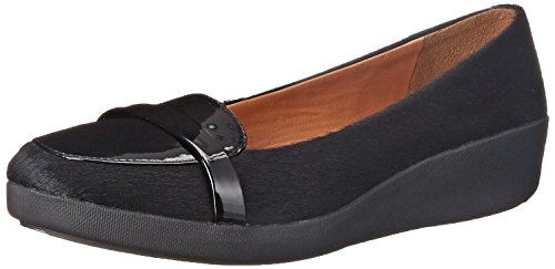 Fitflop F-PopTM Loafer - ladies super comfortable loafers in black faux pony hair and patent upper with Fitflop SupercomFF midsole. Fitflop F-PopTM Loafer in black consist of preppy-perfect lines in an unexpected mix of 'pony' hair and patent which makes for a fun twist on a classic style. With the endlessly comfortable SupercomFF midsole they are perfect for all day wear for work or play.